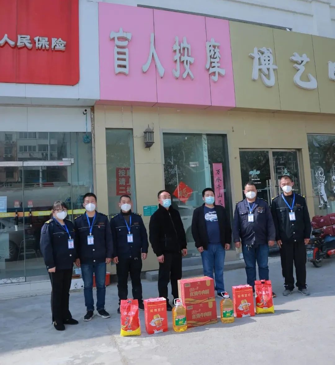 于是,在49日早上,新城公司志愿者李根、吳宗、郭開明、陳新讓、張鐘源、秦娟在取得復工復產(chǎn)工作證后,立刻一起前往超市采購大豆油,大米、面、方便面、成箱奶、水果、蔬菜等物資,不能趕來的志愿者蔣林和張濤為此也捐了款,在第一時間把物資送到孫彩云所在的小區(qū)及盲人按摩店里。