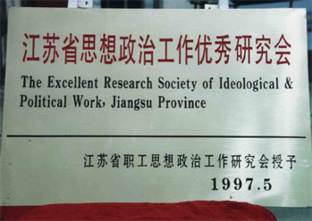 1997年5月,江蘇省職工思想政治工作研究會授予我公司“江蘇省思想政治工作優(yōu)秀研究會”稱號。