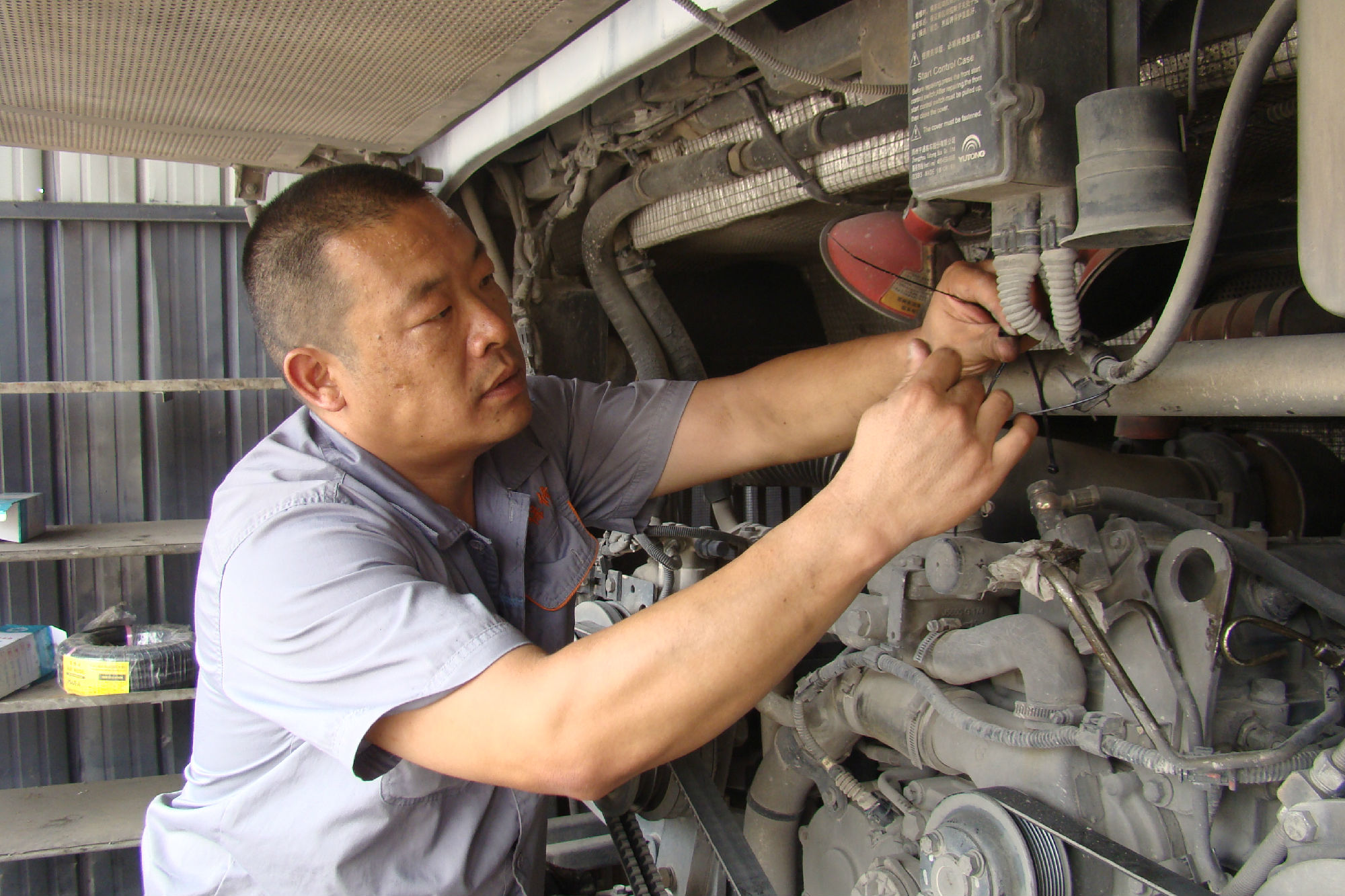 有這樣一群人,他們的雙手總是沾滿油污、他們的衣服總是被汗水浸濕,他們整天蹲在地溝里、躺在汽車下。腿麻了、脖子硬了,腰酸了,他們沒(méi)有一句怨言。他們就是默默奉獻(xiàn)、任勞任怨的修理工——公交車的白衣天使。宋鵬飛就是他們中的一員。