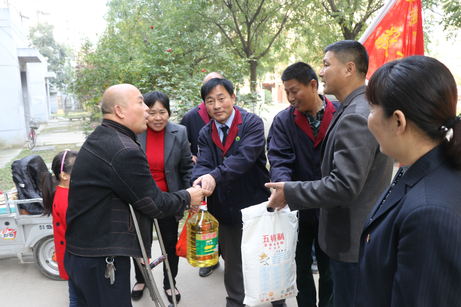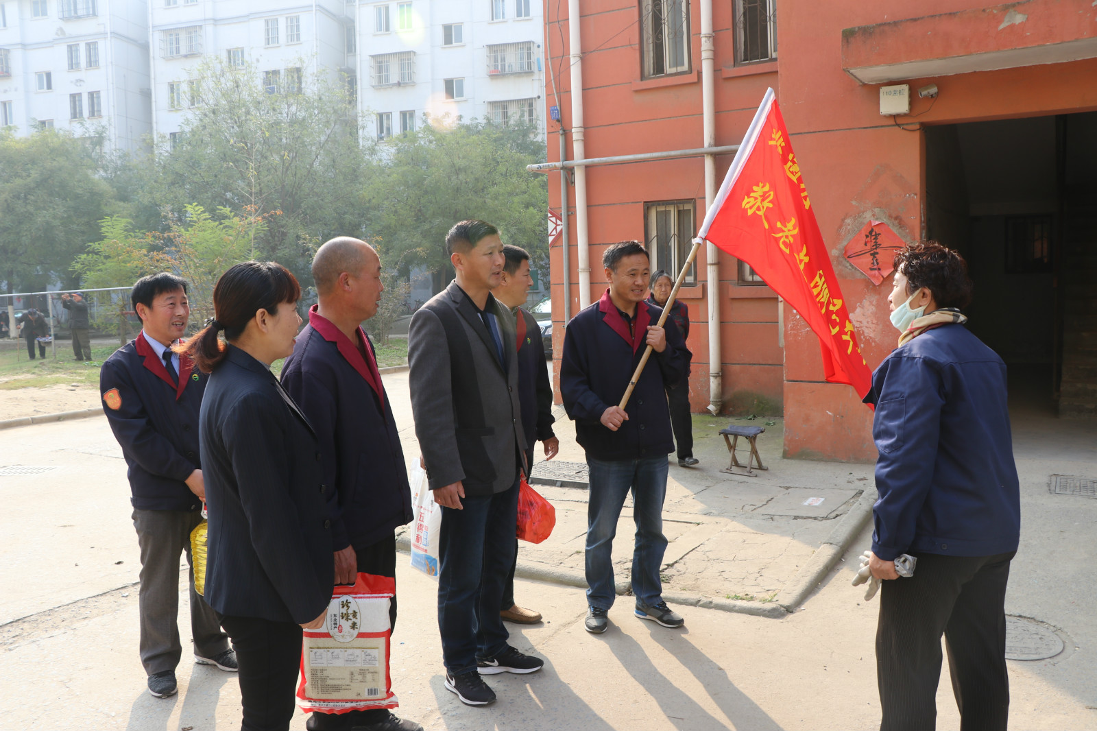 10月28日重陽節(jié),全國“敬老文明號”14路線志愿者服務(wù)隊,來到惠民小區(qū)開展“雙關(guān)愛”活動,關(guān)愛空巢和半失能老人,來到“一對一”結(jié)對幫扶的張金富、張金設(shè)、劉云強等4位失能和半身能老人家中,為他們送去了米、面、油等生活品。