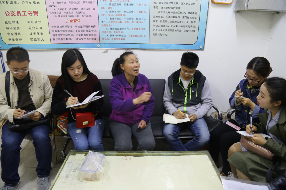 孫師傅發(fā)車了,通訊員們?cè)诟嚥稍L環(huán)節(jié),仔細(xì)觀察、記錄孫師傅在行車中的“一舉一動(dòng)”,尋找采訪細(xì)節(jié)。在孫師傅休停時(shí),大家紛紛拿出相機(jī)、手機(jī),切磋拍照經(jīng)驗(yàn)。為達(dá)到培訓(xùn)目的,采訪前要求通訊員們通過(guò)認(rèn)真思考,提前擬定好了采訪提綱,現(xiàn)場(chǎng)采訪環(huán)節(jié),通訊員們積極踴躍根據(jù)自己擬定好的問(wèn)題對(duì)孫師傅提問(wèn),并認(rèn)真記錄。通訊員“現(xiàn)場(chǎng)練兵”在輕松愉快的氣氛中結(jié)束了,大家表示這種培訓(xùn)形式有趣有收獲。