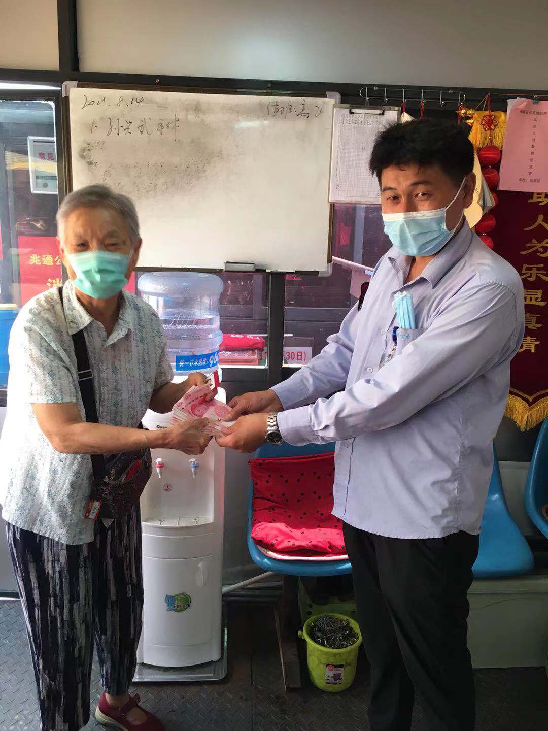 在詢問(wèn)后得知,老人姓宮,從中心醫(yī)院乘車前往宣武市場(chǎng)購(gòu)物,在到達(dá)目的地后,不慎將錢包遺落車上,在核對(duì)身份證信息后,段師傅將錢包還給了老人。宮老太為表感激之情,8月15日,特意制作了一面錦旗送到調(diào)度室,感謝段師傅拾金不昧的高尚品質(zhì)。