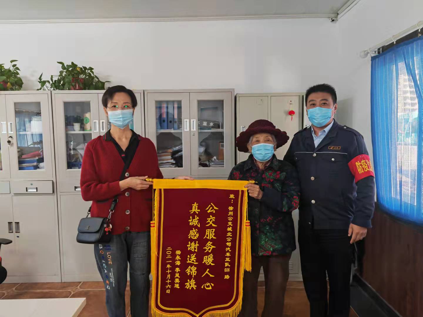 近日,一位老奶奶手拿錦旗,在家人的陪同下來到了徐州公交城北公司韓山車場,感謝駕駛員楊永海師傅的暖心幫扶。