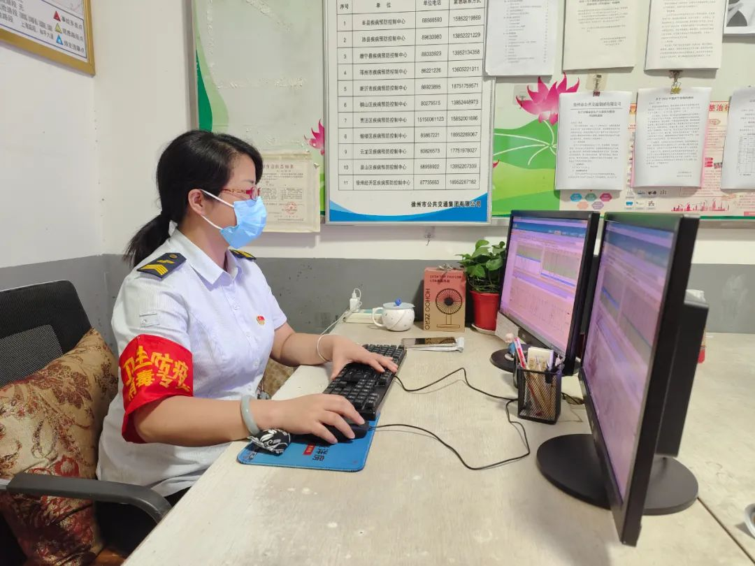 天還未亮,19路調(diào)度室里燈火通明,調(diào)度員黃靜已經(jīng)打開電腦開始了一天的工作,駕駛員陸續(xù)到達(dá),車隊運(yùn)管員鄒晶一邊叮囑著駕駛員安全注意事項,一邊對其進(jìn)行酒精測試,一切井井有條,忙而不亂。首班車駕駛員紀(jì)彤仔細(xì)檢查車況、消毒、通風(fēng)等情況,車上、車下絲毫不敢疏忽,做好出車前的準(zhǔn)備。