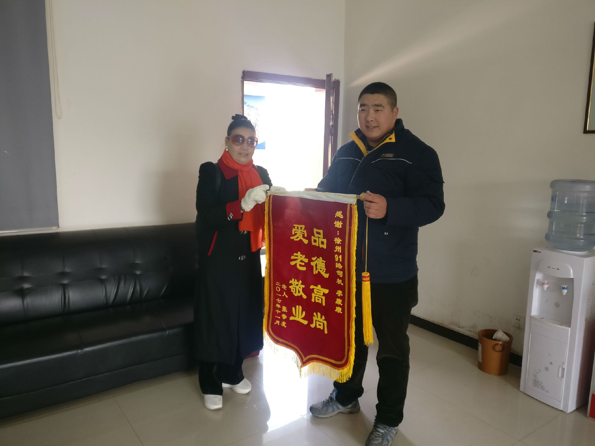 11月21日,李康康正執(zhí)行末班車的任務(wù),夜晚寒冷,車上乘客也比較少。即將到達(dá)終點(diǎn)站時(shí),車上僅剩一位年近70的張女士,李康康看她神情慌張地看著窗外。經(jīng)詢問,得知張女士剛搬到新城區(qū)住不久,迷路了??紤]到張女士年齡較大,于是就把想送張女士回家的想法向線路長及公司做出了匯報(bào)。經(jīng)批準(zhǔn)后,他開車將張女士送回了家。事后,張女士為了表達(dá)謝意,給李康康送來一面錦旗。