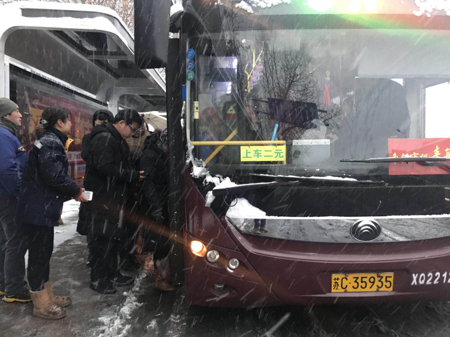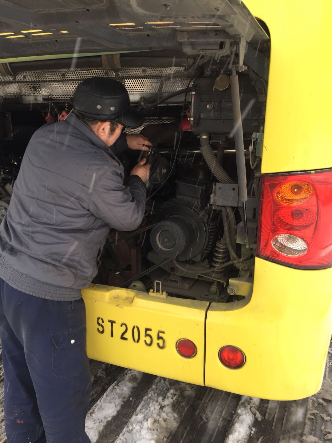 為保證冰雪嚴(yán)寒天氣公交車運力正常,公司提前對2300余輛公交車進行了安全性能的全面普查及換季保養(yǎng)作業(yè)項目,進一步加強車輛的日常維護及“三檢”,嚴(yán)格執(zhí)行維保規(guī)范,確保車輛設(shè)備的防凍液冰點值不低于-15℃,并提前更換了-10號柴油,防止燃氣車輛冰堵。修理人員冒著風(fēng)雪,手凍得通紅仍堅持在現(xiàn)場搶修車輛;智能調(diào)度平臺利用3G視頻實時監(jiān)控線路運營情況,利用車載語音不斷播放安全提示,做好雪天行車安排;公交出租450輛出租車全部出車……4日晚,市區(qū)雪深已達375px,氣溫-7℃。大雪造成高鐵晚點6小時,10路線立即增派7輛加班車增加24個班次,直至5日凌晨4:07最后一班車發(fā)車,堅決不滯留一名乘客,全力保障了雪天市民的安全出行。