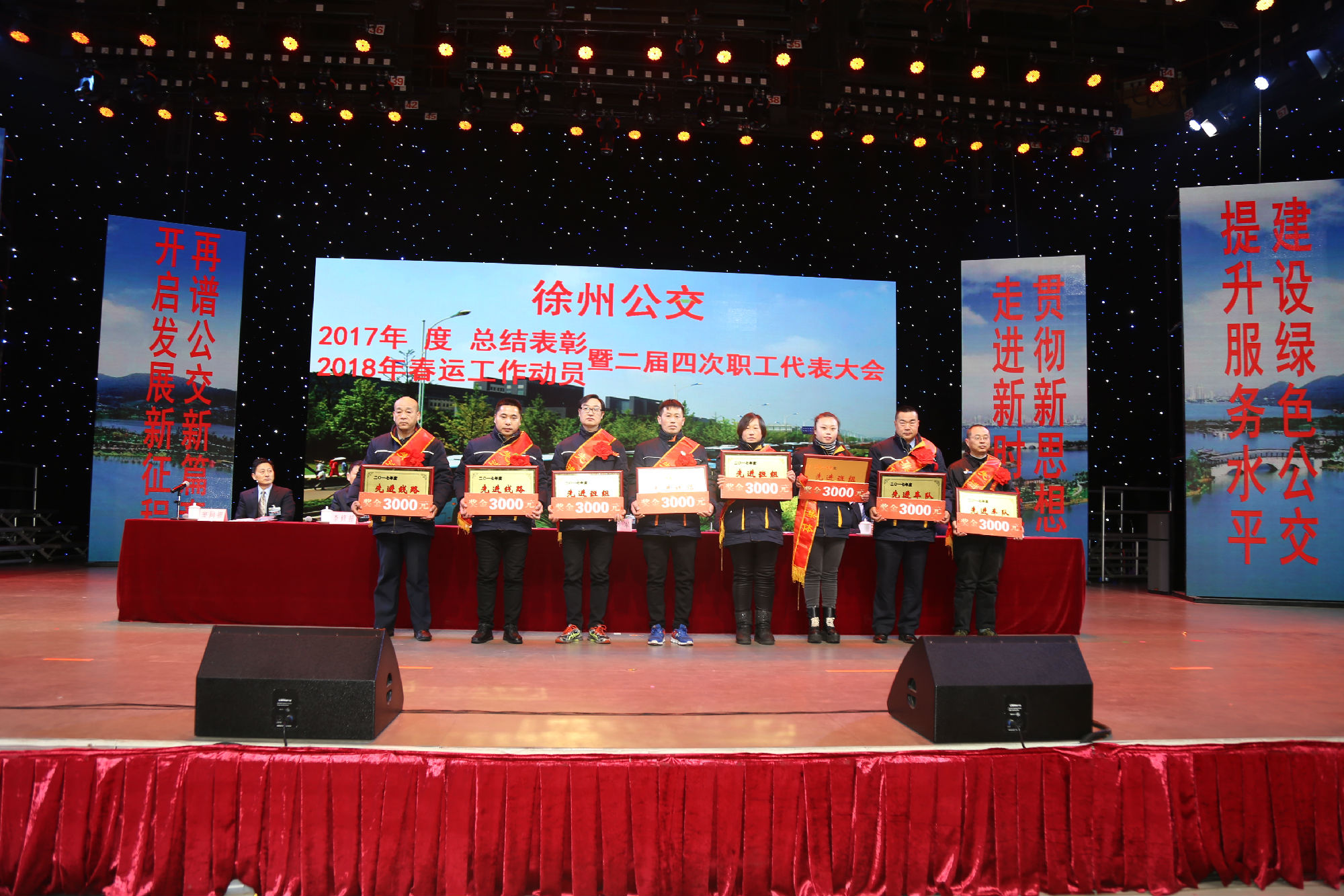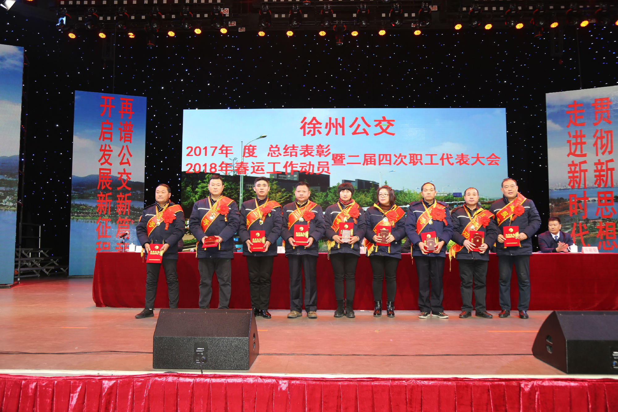 大會(huì)在莊嚴(yán)的國(guó)歌聲中拉開(kāi)序幕。公司董事長(zhǎng)、總經(jīng)理杜紅軍首先作經(jīng)理工作報(bào)告,對(duì)2017年“改革創(chuàng)新年”工作進(jìn)行了全面總結(jié):一、實(shí)施“同城同價(jià)”,優(yōu)化運(yùn)營(yíng)管理,實(shí)現(xiàn)服務(wù)水平新突破。連續(xù)第五年面向全市征集線(xiàn)路線(xiàn)網(wǎng)優(yōu)化意見(jiàn)近3000條,據(jù)此新辟優(yōu)化線(xiàn)路29條。二、深化資源共享,在互聯(lián)網(wǎng)+企業(yè)管理上譜寫(xiě)新藍(lán)圖。繼續(xù)深化集中維修,推行集中例檢。論證實(shí)施支付寶、微信、銀行卡閃付等智能化移動(dòng)支付方式。三、深化文明創(chuàng)建,打造優(yōu)秀公交,服務(wù)民生出行贏得新口碑。在國(guó)檢、省檢中未失一分,圓滿(mǎn)完成創(chuàng)建驗(yàn)收任務(wù)。投訴總數(shù)和有責(zé)投訴同比實(shí)現(xiàn)“雙下降”。乘客表?yè)P(yáng)同比上升近20%。公司在2016年行風(fēng)熱線(xiàn)上線(xiàn)單位滿(mǎn)意度評(píng)議投票中名列榜首。率先打造公交行業(yè)禮讓斑馬線(xiàn)嶄新形象,圓滿(mǎn)完成公交反恐防暴工作。四、著力綜合管理,聚合內(nèi)生動(dòng)能,增強(qiáng)企業(yè)發(fā)展新優(yōu)勢(shì)。重新修訂2012版管理制度匯編和新版《徐州公交獎(jiǎng)懲條例》。五、踐行十九大精神,推進(jìn)和諧發(fā)展,開(kāi)創(chuàng)黨群工作新面貌。接著,杜總分析了工作中存在的問(wèn)題,提出下步工作重點(diǎn)。一、建設(shè)現(xiàn)代化公交,提升經(jīng)營(yíng)管理水平,保障企業(yè)良性有序運(yùn)行;二、踐行集約共享理念,深化科技應(yīng)用,開(kāi)創(chuàng)公交事業(yè)發(fā)展新局面;三、建設(shè)平安公交,提升服務(wù)口碑,展示文明公交新形象;四、踐行十九大精神,構(gòu)建和諧公交,開(kāi)啟黨群工作新面貌。